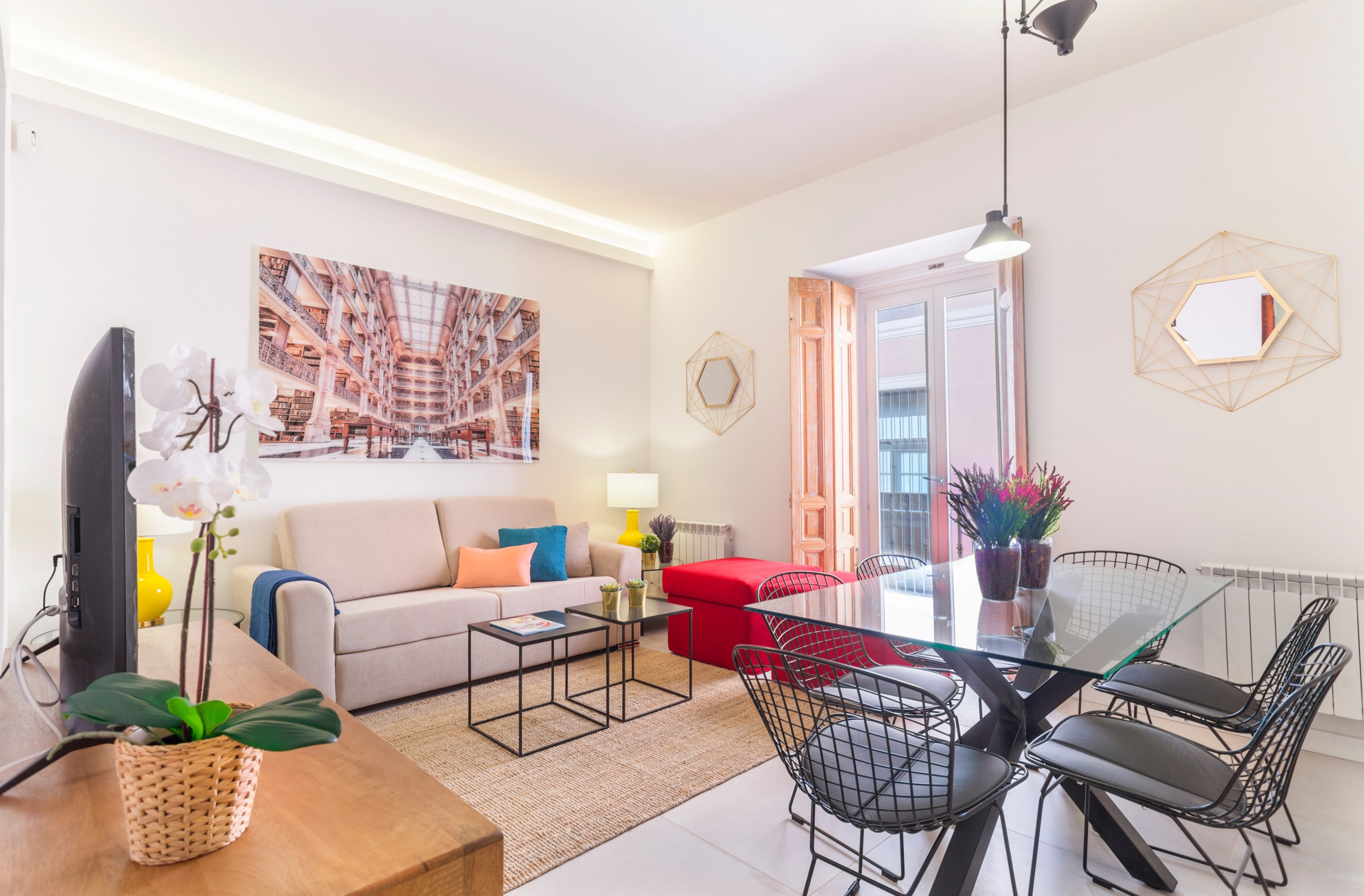 El apartamento está ubicado junto a la Calle de Atocha, a tan solo unos minutos a pie de la Calle Mayor, el Paseo de Recoletos o la Plaza de Santa Ana, en una zona en pleno proceso de renovación. Por sus calles, la gente de Madrid y los lugares más típicos de la ciudad se mezclan con tiendas, teatros, bares de moda y restaurantes de todo tipo.