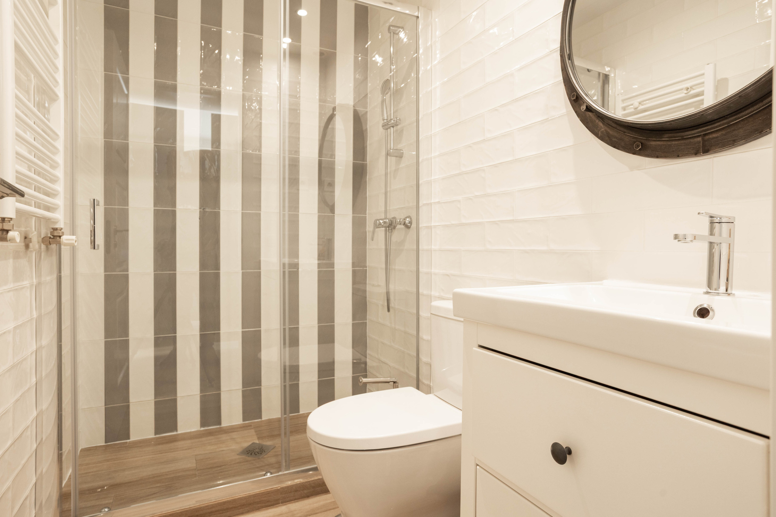The apartment has heating and air conditioning in all rooms.