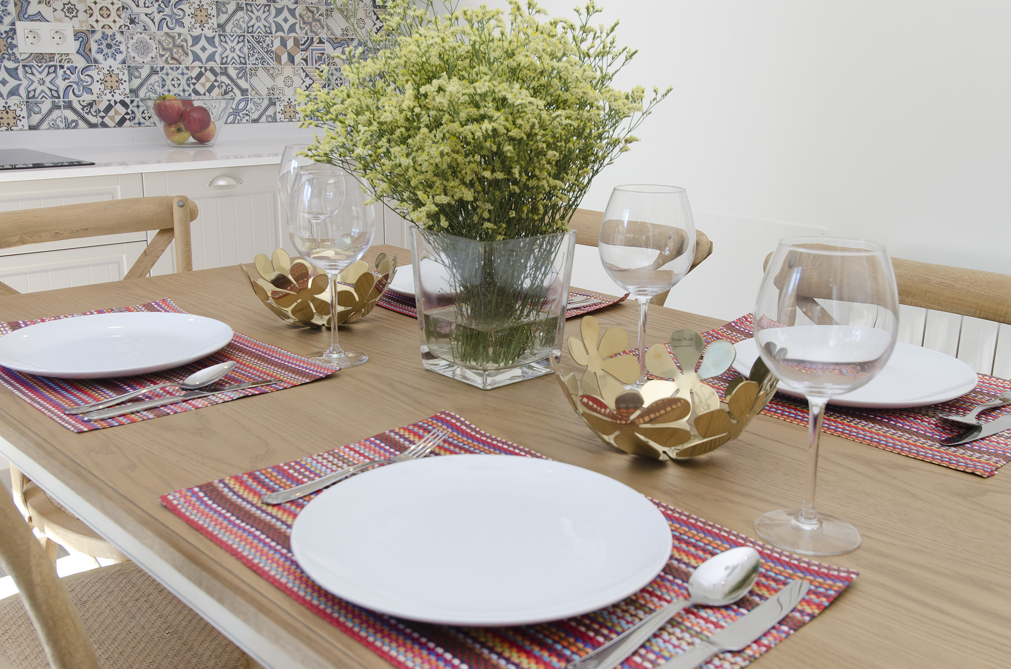 They highlight the decoration in the purest boho chic style, the furniture with combined colours with ethnic touches, the wallpaper and the natural materials that will make the apartment guests fall in love.