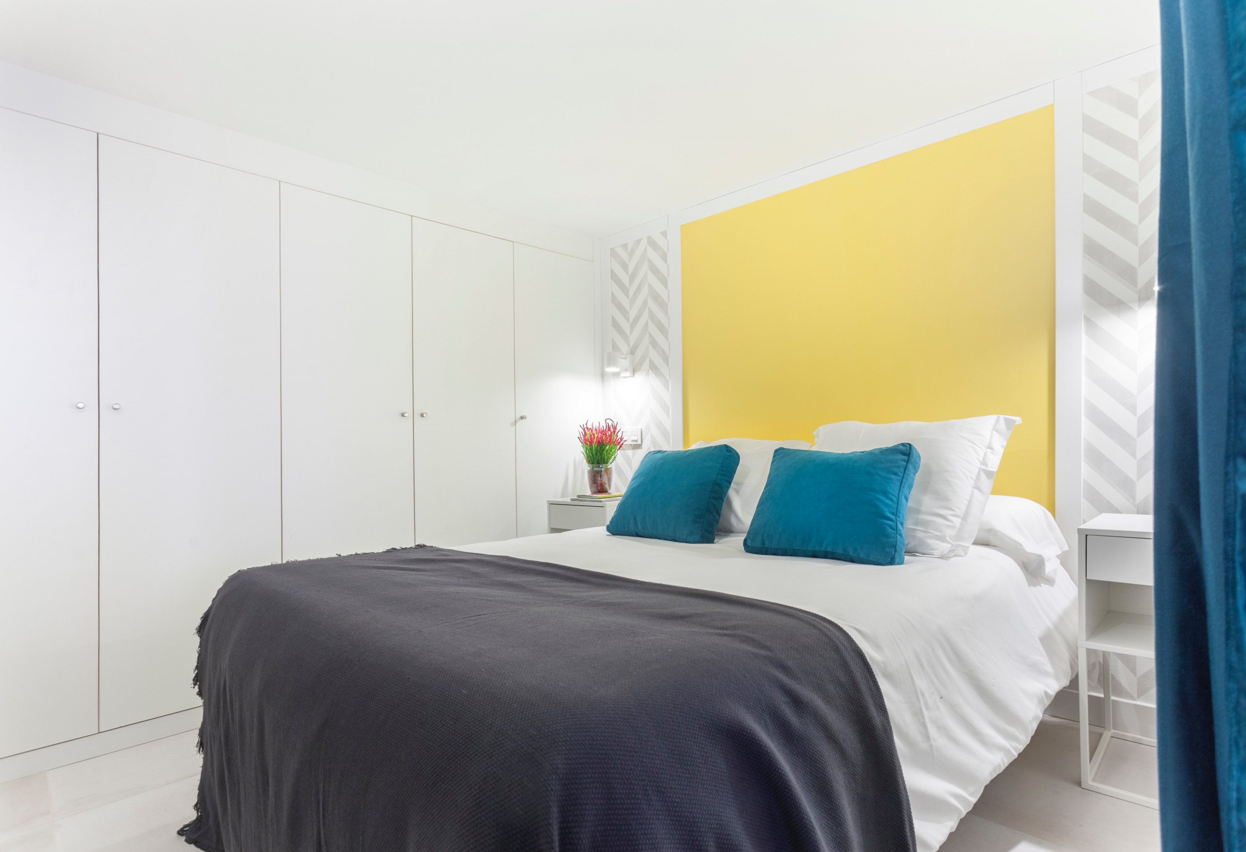 The main bedroom, with a simple and cosy style, has a double bed and a built-in wardrobe.